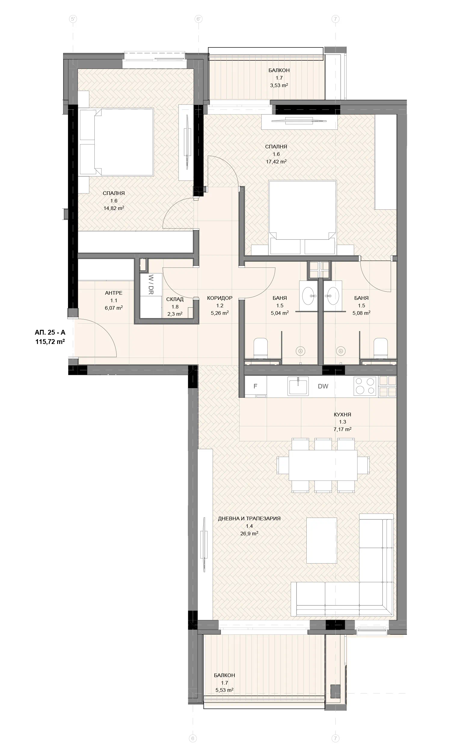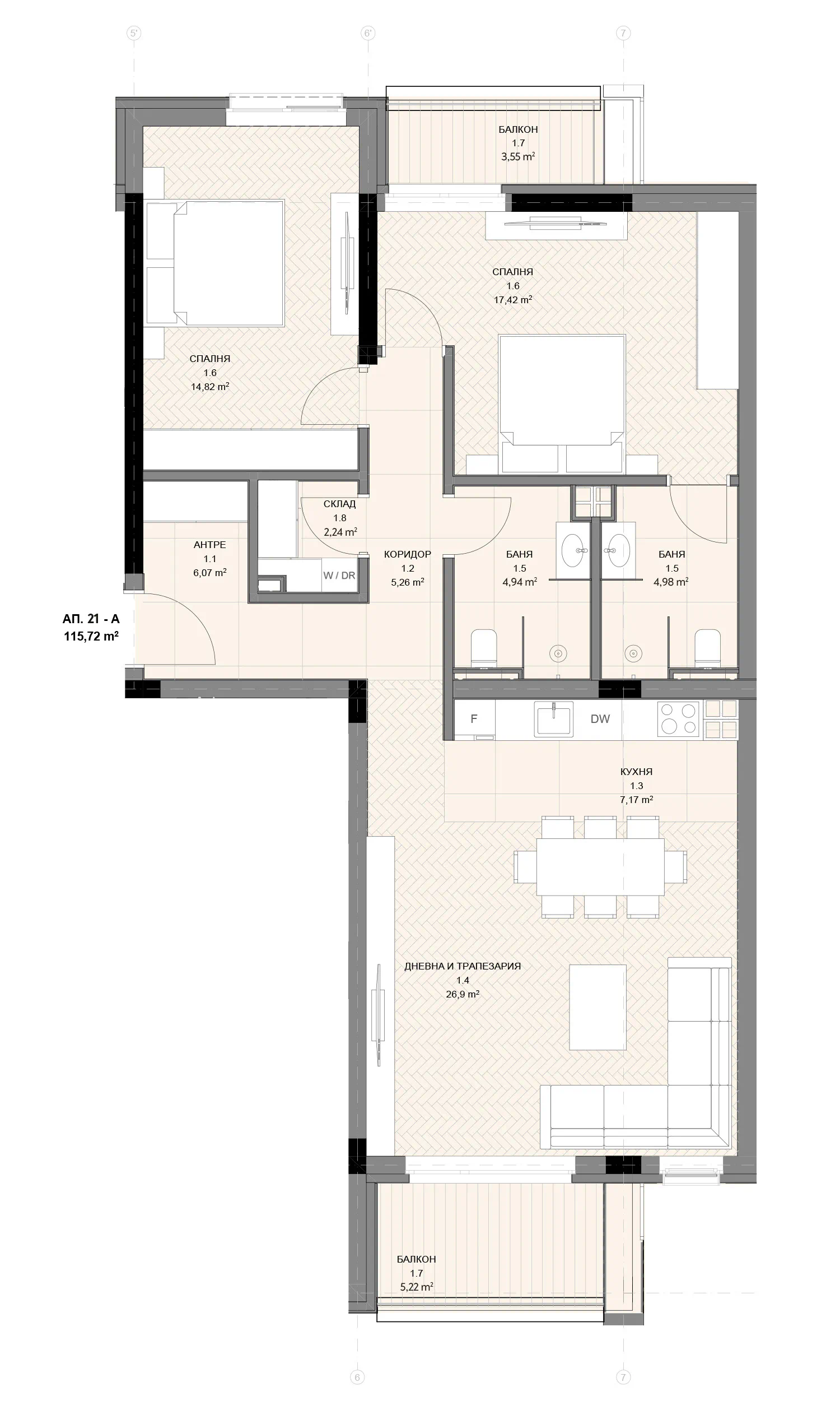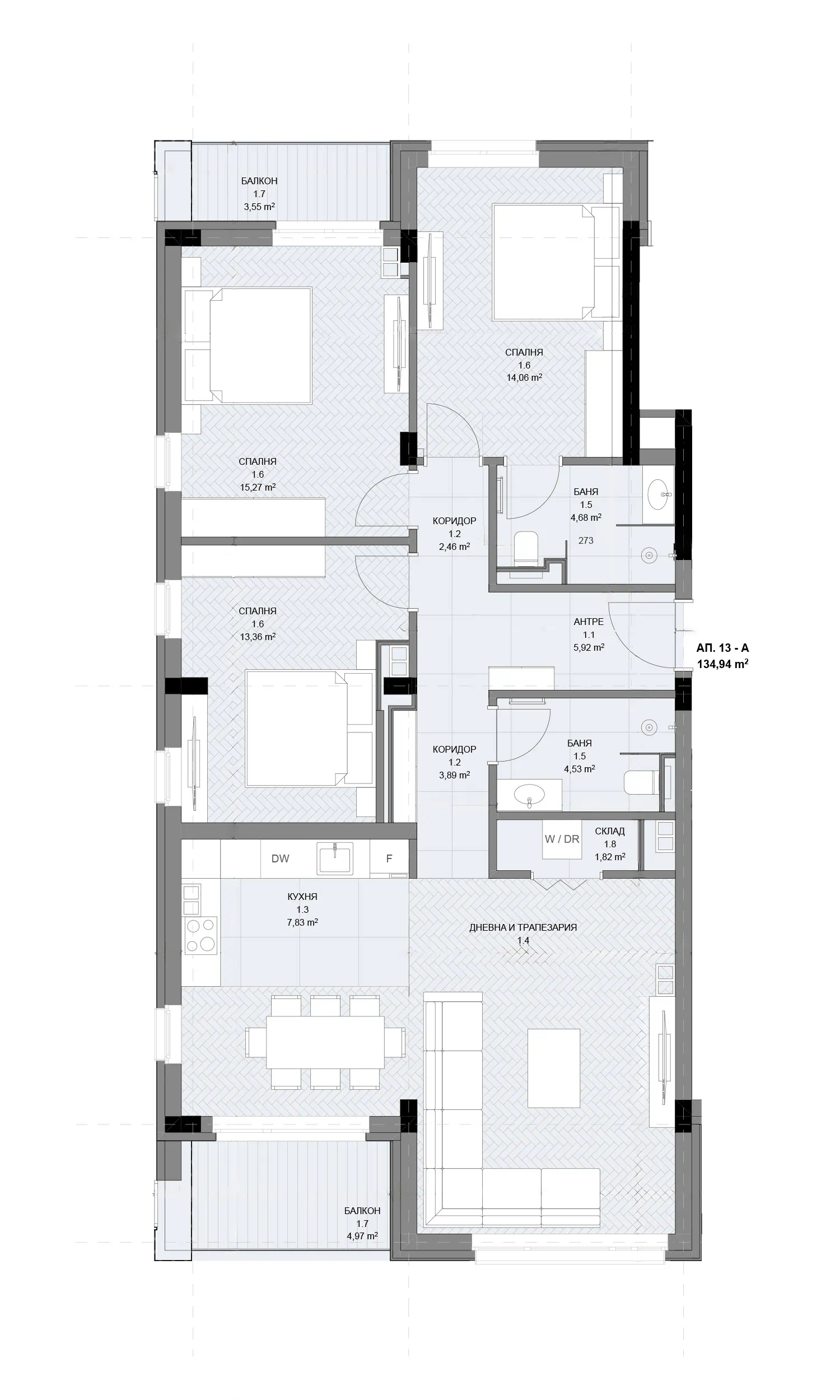 In addition to its modern design and convenient location, Atrium Residence is built with high-quality materials and state-of-the-art technologies that ensure energy efficiency and comfort. The ventilated facade, aluminium joinery with double-glazed windows, and carefully selected finishing materials contribute to a sense of luxury and cosiness. The residential environment is designed to meet the high demands of contemporary urban dwellers – combining security, aesthetics, and functionality. Atrium Residence is not just a place to live but a home where comfort and style come together to create a better quality of life.