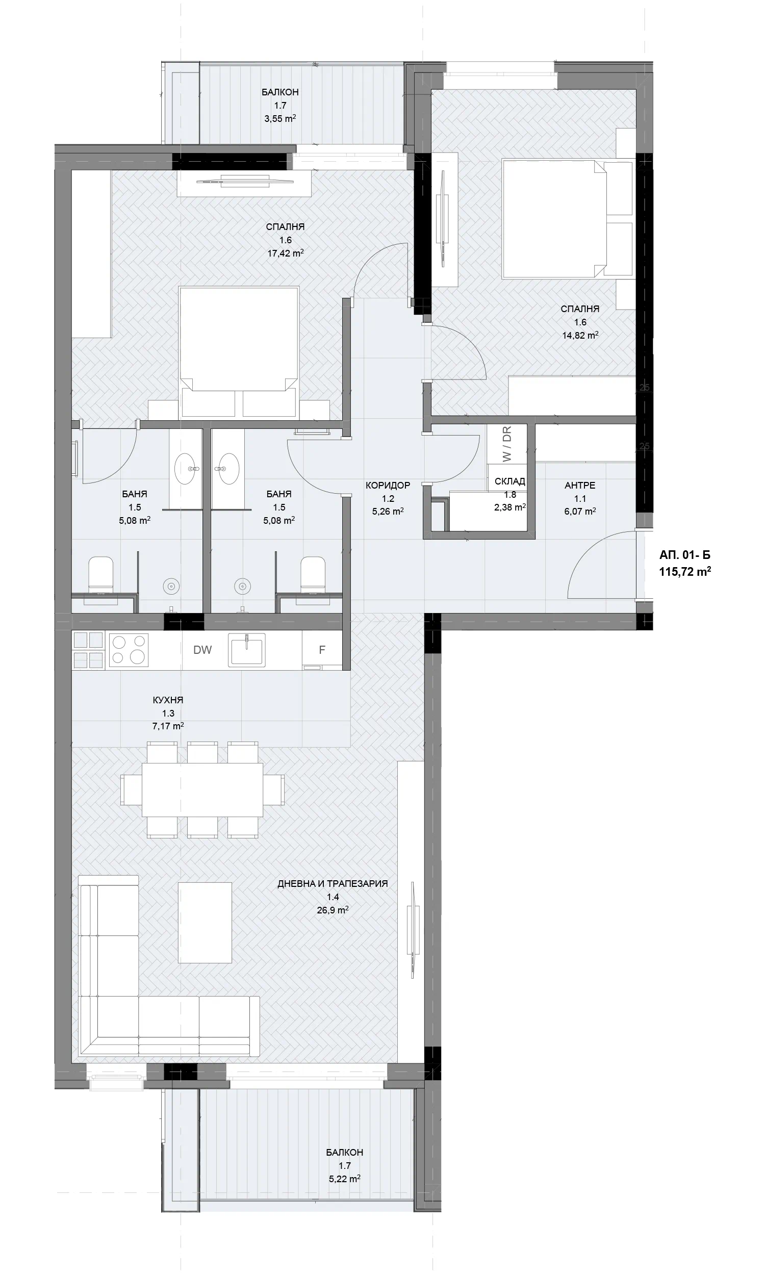 Atrium Residence is an elegant and modern residential building located in the heart of one of Sofia’s fastest-growing neighbourhoods – Ovcha Kupel. Designed by the renowned architectural studio CAST, it impresses with its stylish facade, spacious apartments, and breathtaking views of Vitosha Mountain.