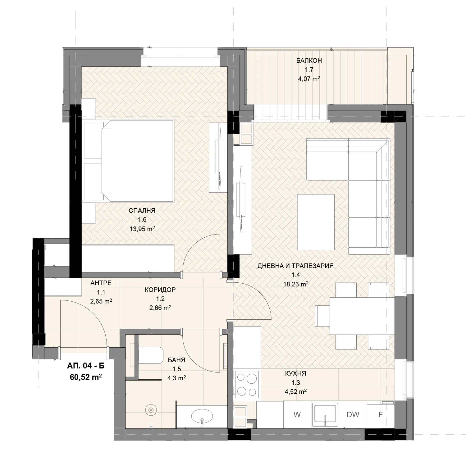 The building is situated just 50 meters from “Mizia” metro station, ensuring quick and convenient access to downtown Sofia and major transport connections. Residents will find New Bulgarian University, shops, schools, and Kukuryak Park nearby, which offers green spaces for relaxation and sports. This makes Atrium Residence the perfect choice for both families and young professionals looking for a balance between dynamic city life and the tranquillity of nature.